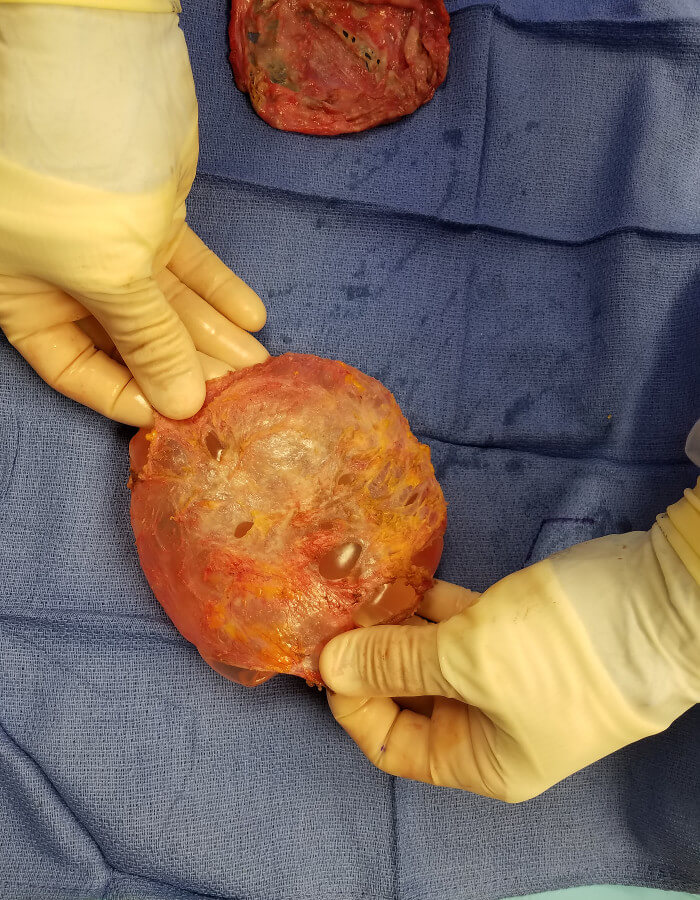 A capsulectomy is an open surgery during which Dr. Tarola will cut out the scar tissue and fully remove the breast capsular contracture. Dr. Tarola will perform an “en bloc capsulectomy” when necessary and/or requested by the patient. He will also take photographs of the scar tissue and implants immediately following their removal, return the implants to the patients upon request, and send the capsules to pathology.
